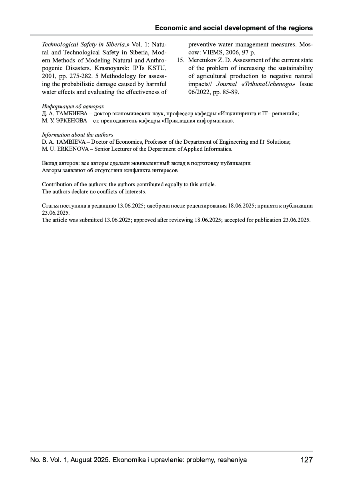 15. Меретуков З. Д. Оценка современного состояния проблемы повышения устойчивости сельскохозяйственного производства к негативным природным воздействиям// Журнал “Трибуна ученого” Выпуск 06/2022, С. 85-89.