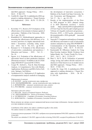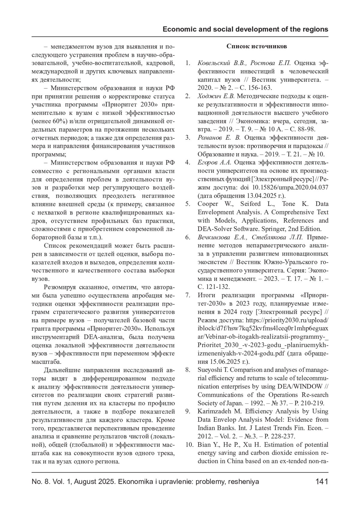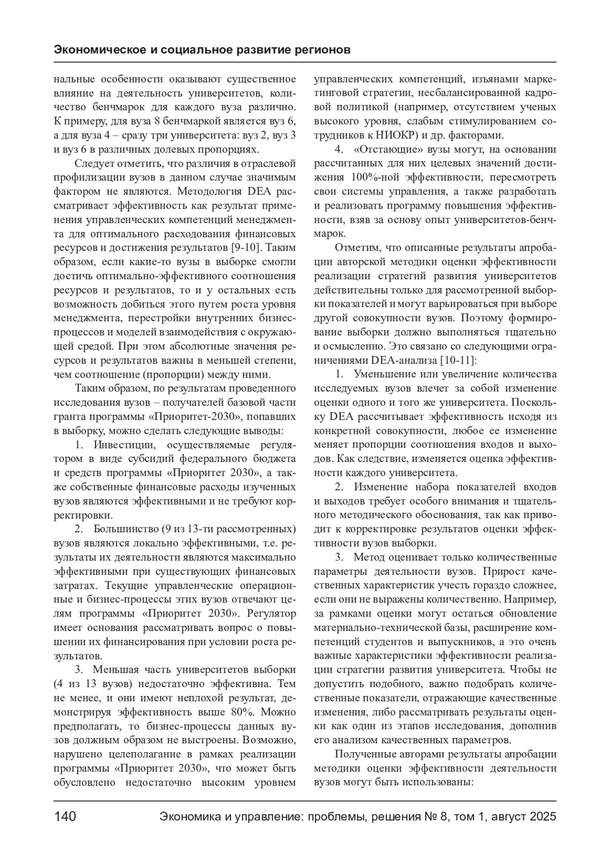 Ключевые фразы: менеджмент в образовании, управление системой высшего образования, программы стратегического развития университетов, методы оценки эффективности вузов, непараметрический анализ эффективности деятельности, data envelopment analysis (dea), программа «приоритет 2030»