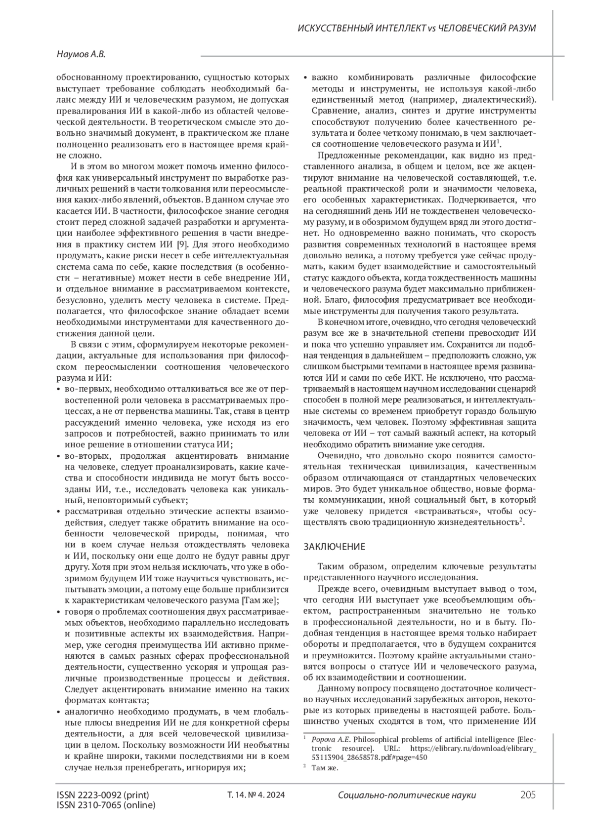 6. Разин А.В. Этика искусственного интеллекта // Философия и общество. 2019. № 15. С. 202-208. EDN: YPCXWS