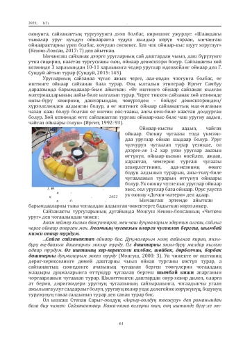 В данном исследовании представлены результаты полевой работы по обучению монгольскому хooмию. Основная цель состоит в наблюдении за процессом полевого исследования по программе «Национальное народное искусство». Ключевым компонентом упомянутой программы является ежегодное полевое исследование, проводимое в августе на базе университетского эколагеря «Эгшиглен». Оно представлено 7–10-дневным полевым исследованием, подчеркивает глубокую связь между человеком и природой. Во время отдыха в лагере студенты имеют возможность заниматься в разных условиях: открытые поля, горы, скалистые местности, водоемы, реки и др. Данные для исследования были собраны посредством включенного наблюдения в период учебного курса 2023 и 2024 годов с использованием качественных методов исследования. Исследование классифицирует и документирует последовательность и процесс упражнений, выполняемых во время практических занятий под руководством Одсурена Б., в которых рассматривается подробный анализ педагогических подходов в рамках программы «Национальное народное искусство». Исследование полевых практик проводилось с согласия администрации школы и руководителя соответствующего отдела. Повседневная жизнь и практика всех участвующих в проекте студентов наблюдались в соответствии с этическими нормами, а результаты были представлены в академических целях. Наблюдения были полностью основаны на полевой практике класса по хooмию, и проводились на открытых территориях. Ежедневно студенты практиковались в разных условиях, выполняя различные упражнения (вертикально, горизонтально, сидя, стоя, с поднятием тяжестей, без поднятия тяжестей, босиком, в обуви). Местоположение и характер эколагеря «Эгшиглен» полностью обеспечивали необходимые условия для этих разнообразных практик.