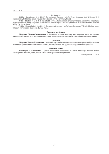 11. ЭСТЯ — Татаринцев Б. И. Этимологический словарь тувинского языка. Том V: С / отв. под ред. Н. Н. Широбокова. Новосибирск: Наука, 2018. 180 с.