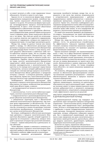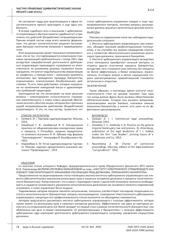 Статья: ИНСТИТУТ АРБИТРАЖНОГО УПРАВЛЯЮЩЕГО КАК ЭЛЕМЕНТ ОБЕСПЕЧИТЕЛЬНОГО МЕХАНИЗМА РЕАЛИЗАЦИИ ПРАВ ДОЛЖНИКА, ПРИЗНАННОГО БАНКРОТОМ (2023)
