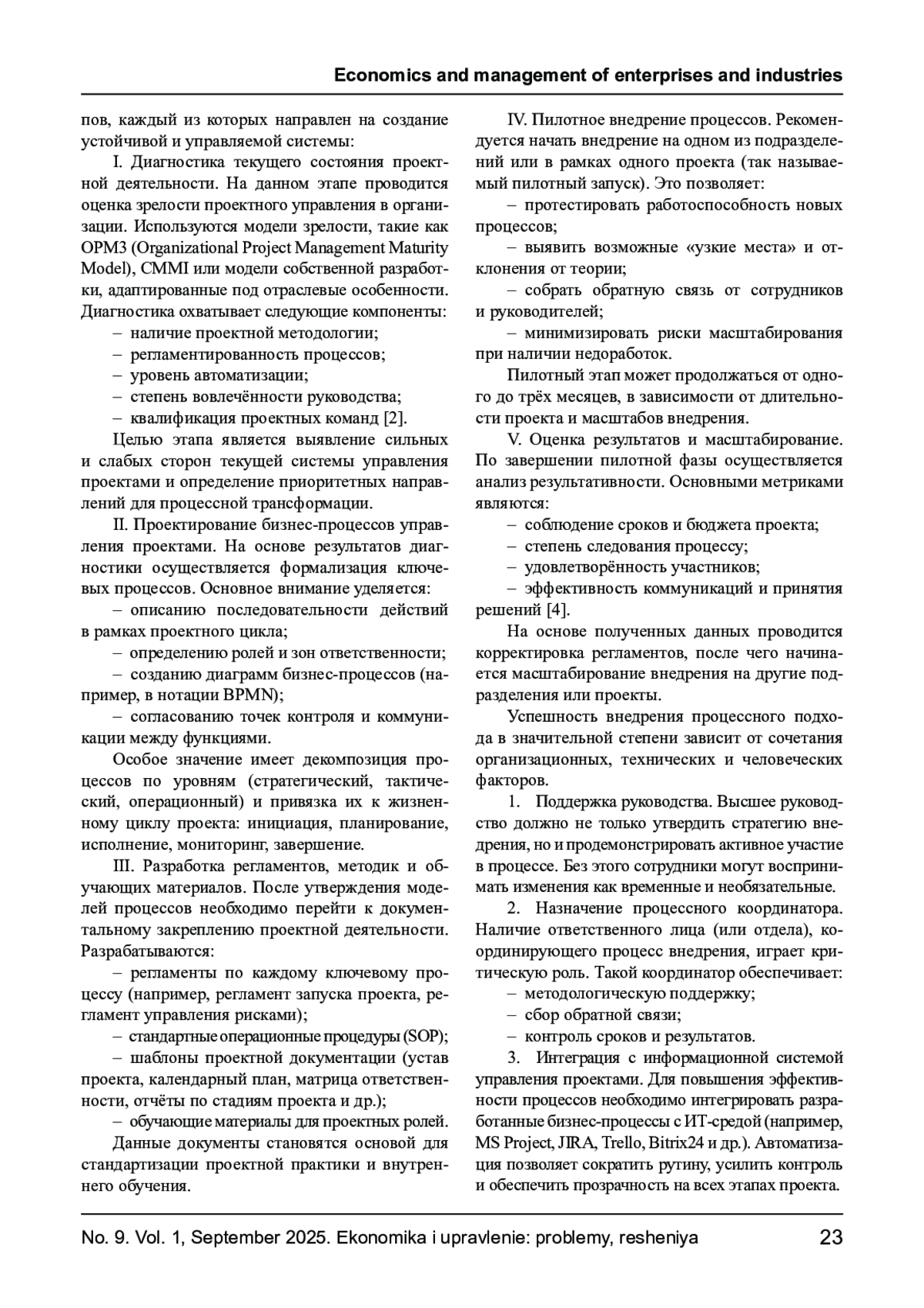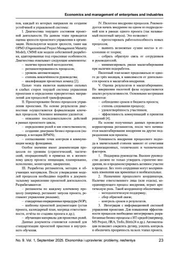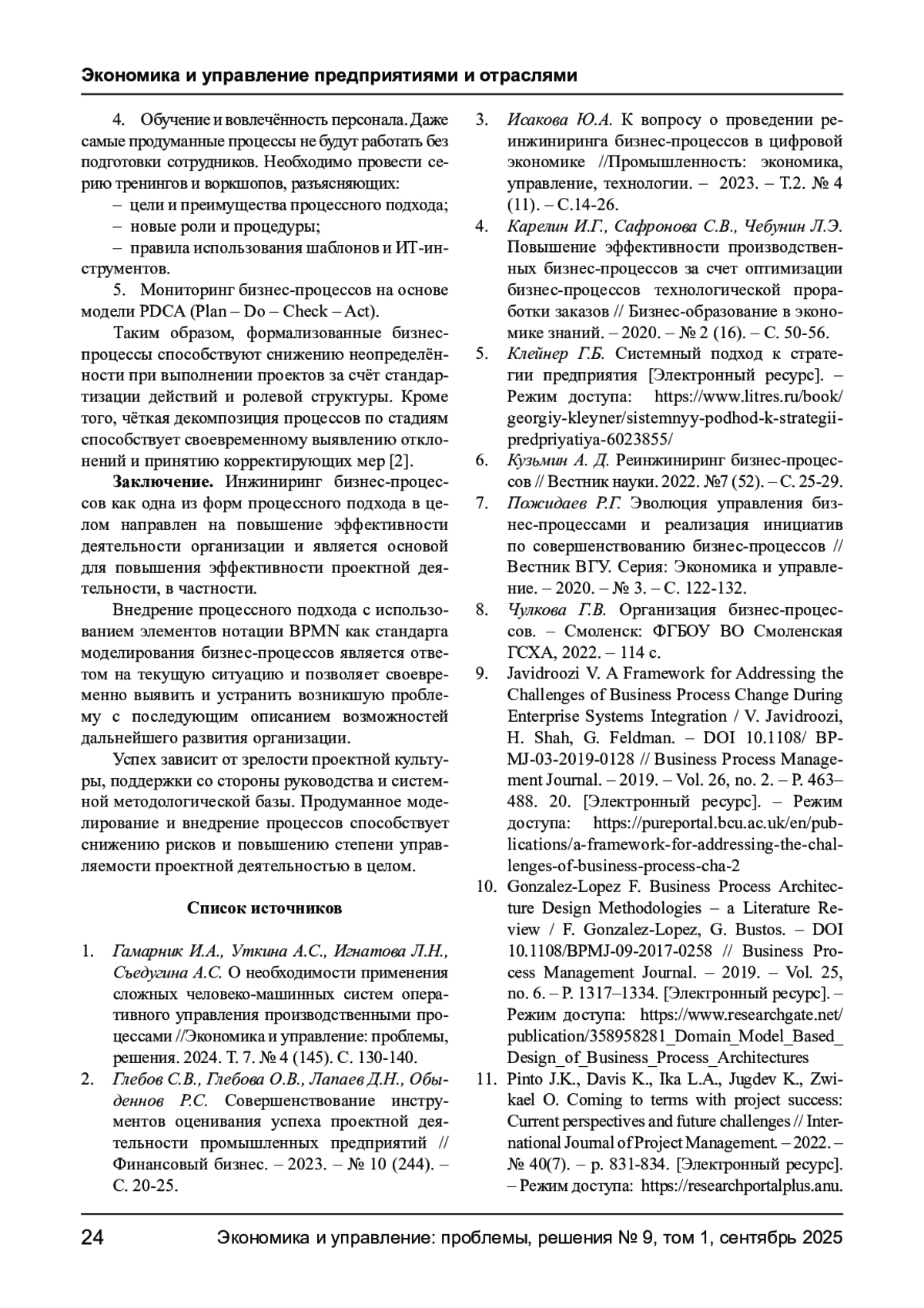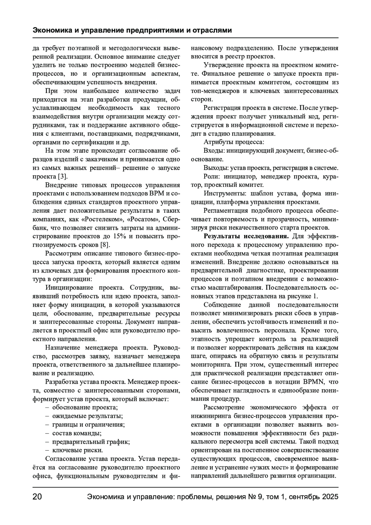 РАДЧЕНКОВА Е. С., ИГНАТОВА Л. Н. ВОЗМОЖНОСТИ БИЗНЕС-ИНЖИНИРИНГА В УПРАВЛЕНИИ ПРОЕКТНОЙ ДЕЯТЕЛЬНОСТЬЮ ОРГАНИЗАЦИИ // ЭКОНОМИКА И УПРАВЛЕНИЕ: ПРОБЛЕМЫ, РЕШЕНИЯ. 2025. ТОМ 1 № 9