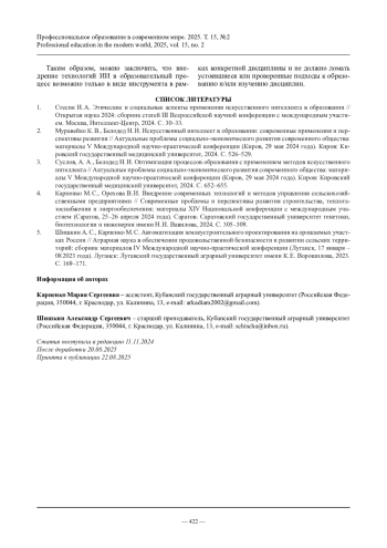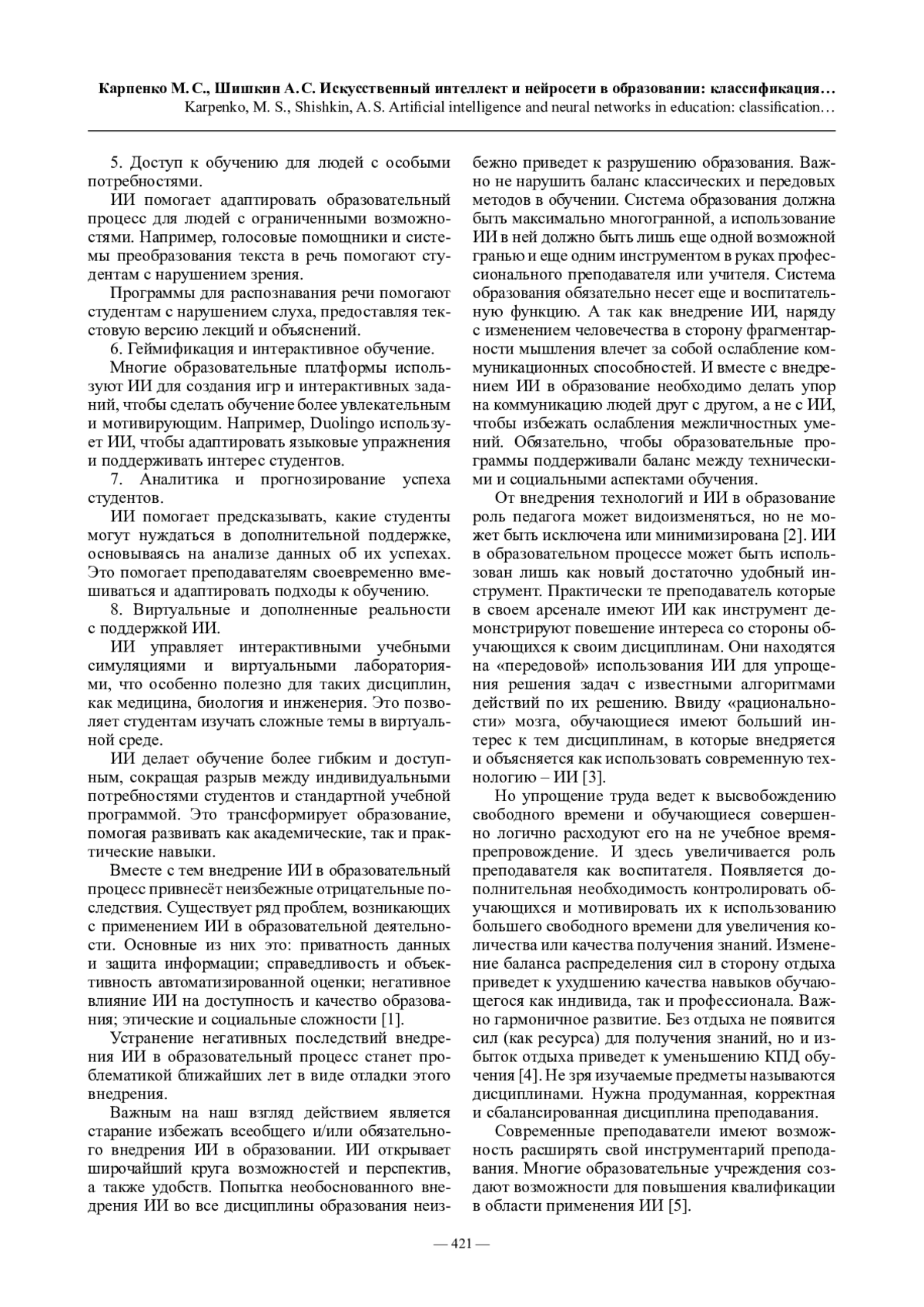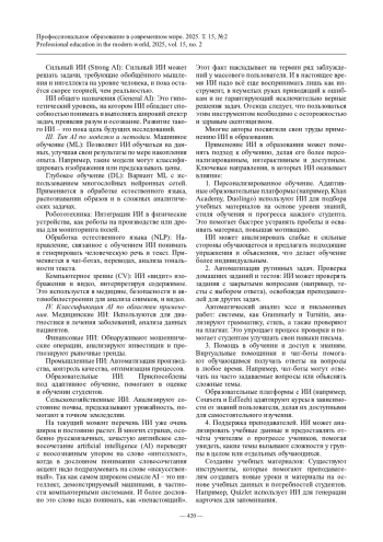 КАРПЕНКО М. С. ИСКУССТВЕННЫЙ ИНТЕЛЛЕКТ И НЕЙРОСЕТИ В ОБРАЗОВАНИИ: КЛАССИФИКАЦИЯ И ПЕРСПЕКТИВЫ ПРИМЕНЕНИЯ // ПРОФЕССИОНАЛЬНОЕ ОБРАЗОВАНИЕ В СОВРЕМЕННОМ МИРЕ. 2025. Т. 15, № 2