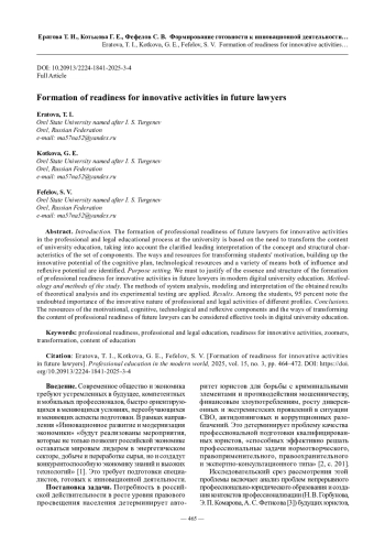 Постановка задачи. Обоснование сущности и структуры формирования профессиональной готовности к инновационной деятельности у будущих юристов в современном цифровом университетском образовании.