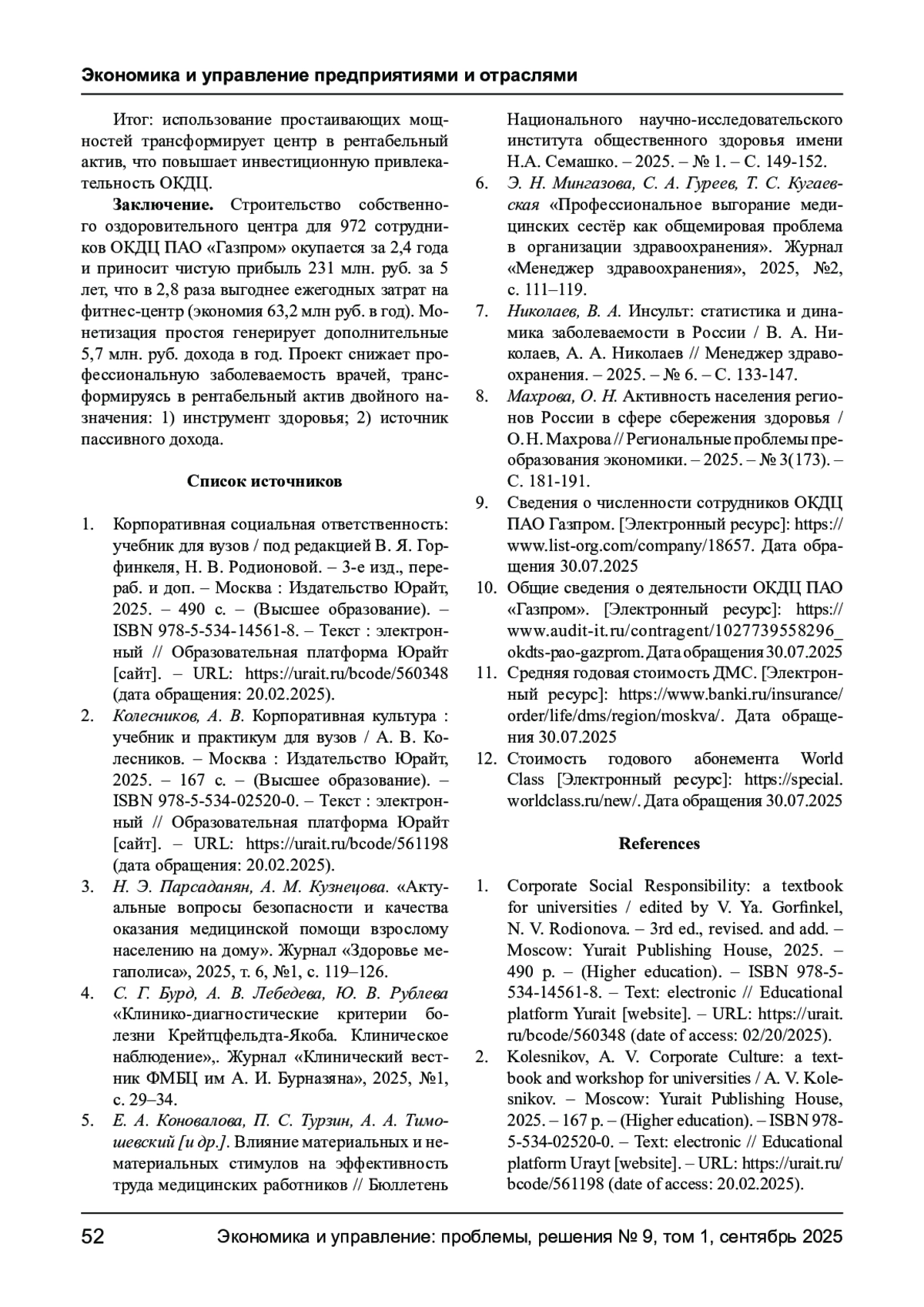 6. Э. Н. Мингазова, С. А. Гуреев, Т. С. Кугаевская “Профессиональное выгорание медицинских сестёр как общемировая проблема в организации здравоохранения”. Журнал “Менеджер здравоохранения”, 2025, №2, с. 111-119. EDN: EFRNSC