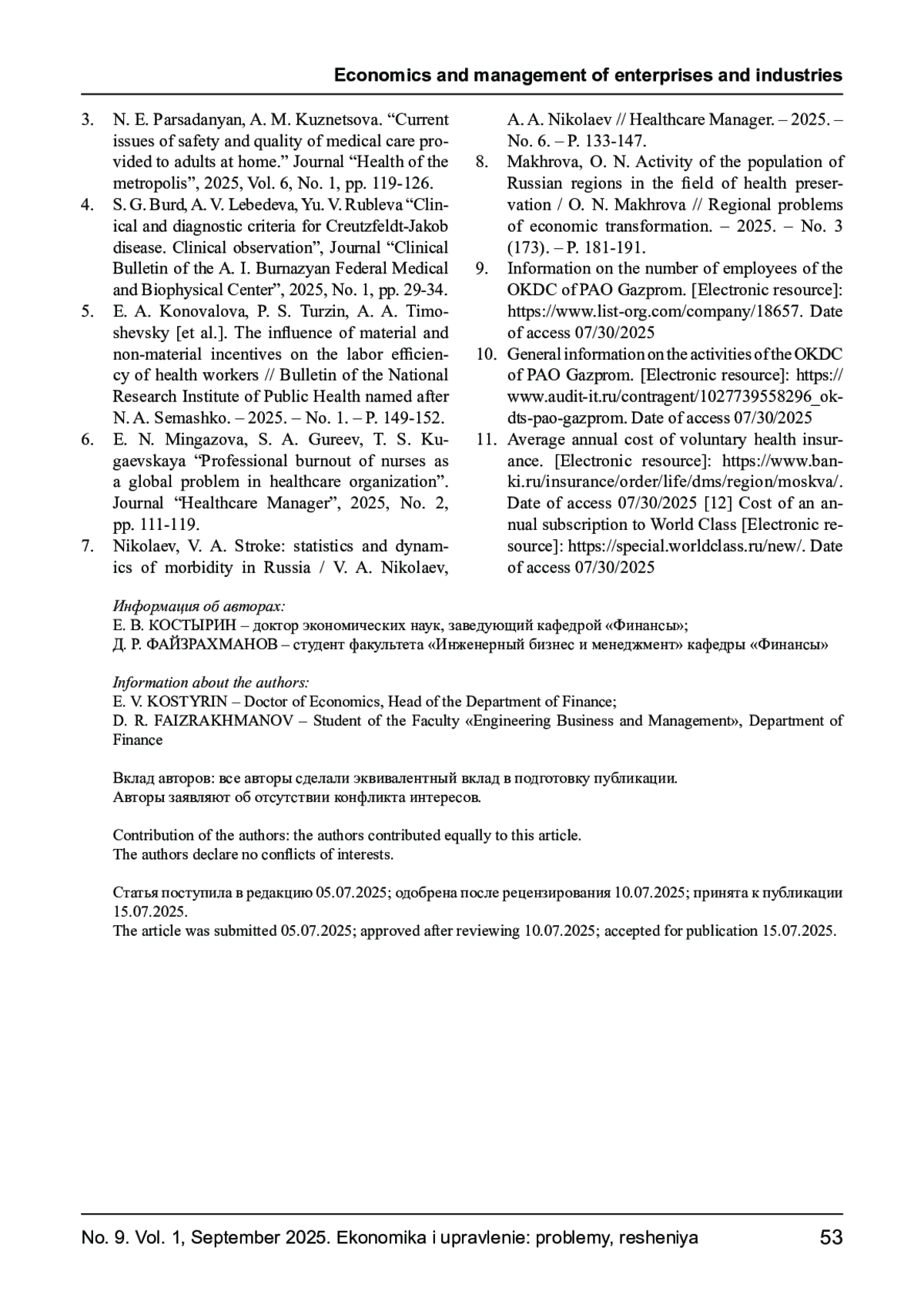 8. Махрова, О. Н. Активность населения регионов России в сфере сбережения здоровья / О. Н. Махрова // Региональные проблемы преобразования экономики. - 2025. - № 3(173). - С. 181-191. EDN: DYXMVQ