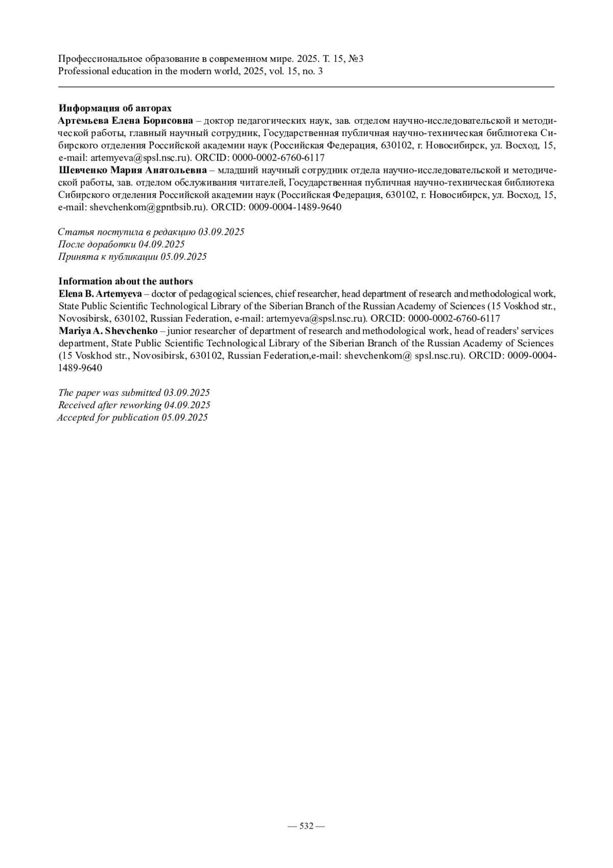3. Соколов А. В. Ноосферный человек в библиотеке будущего // Библиотековедение. 2019. Т. 68, № 1. С. 7-17.