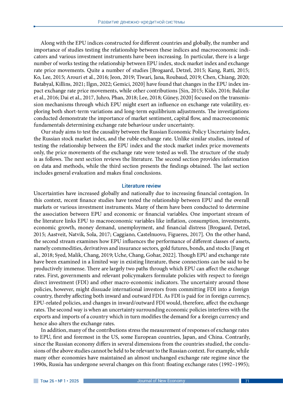 Статья: THE RELATIONSHIP OF ECONOMIC POLICY UNCERTAINTY WITH THE STOCK MARKET INDEX AND THE EXCHANGE RATE: THE CASE OF RUSSIA (2025)