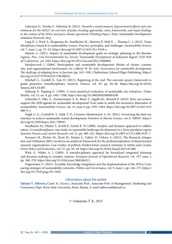38. Zeigermann U. (2021). Scientific knowledge integration and the implementation of the SDGs: Comparing strategies of sustainability networks. Politics and Governance, vol. 9, issue 1, pp. 164-175. DOI: 10.17645/pag.v9i1.3630 EDN: GJRKVZ