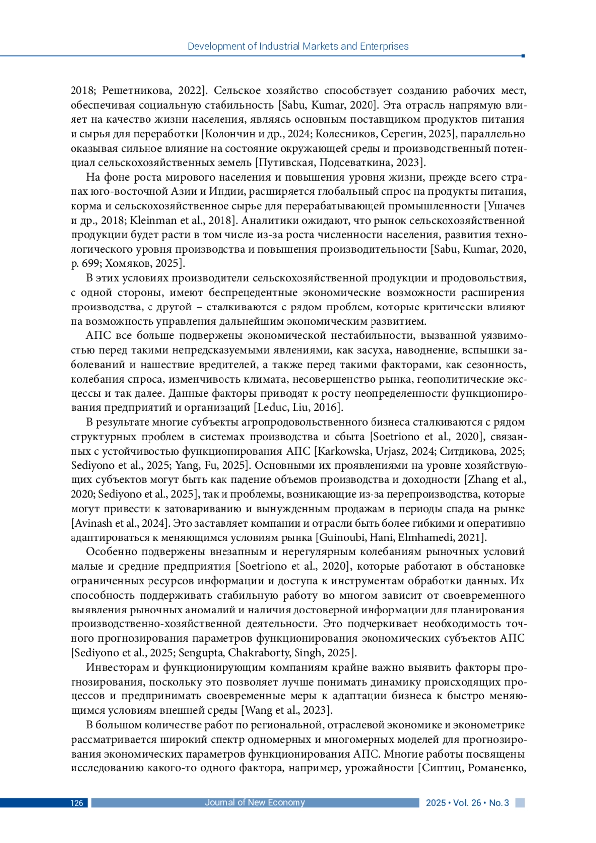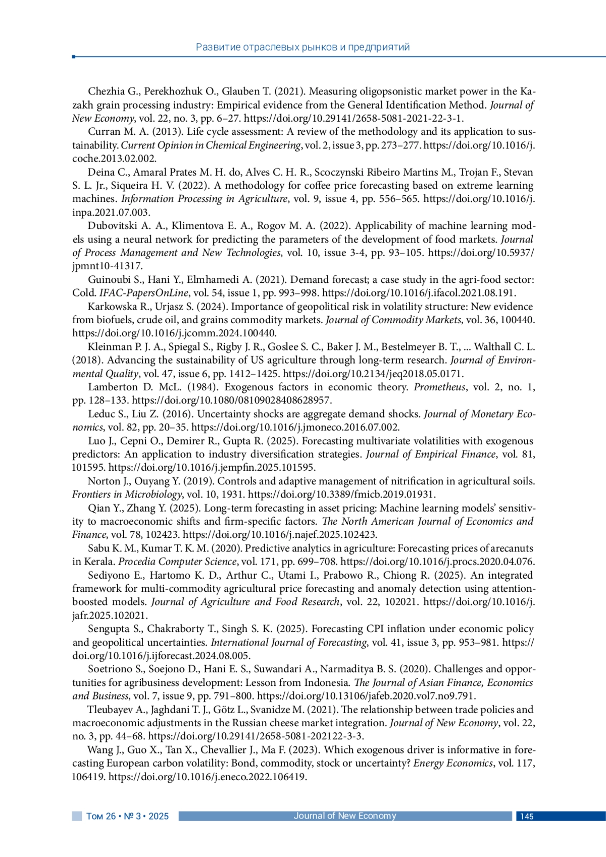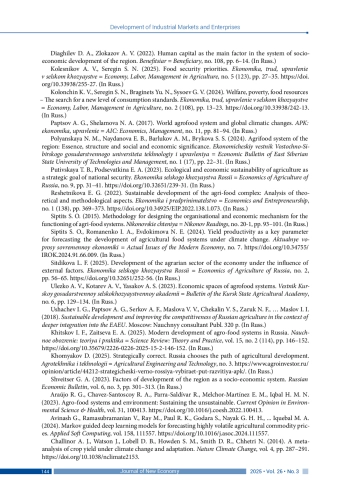 17. Хицков И. Ф., Зайцева Е. А. (2025). Современное развитие агропродовольственных систем в России // Научное обозрение: теория и практика. Т. 15, № 2 (114). С. 146-152. DOI: 10.35679/2226-0226-2025-15-2-146-152 EDN: OCPPOU