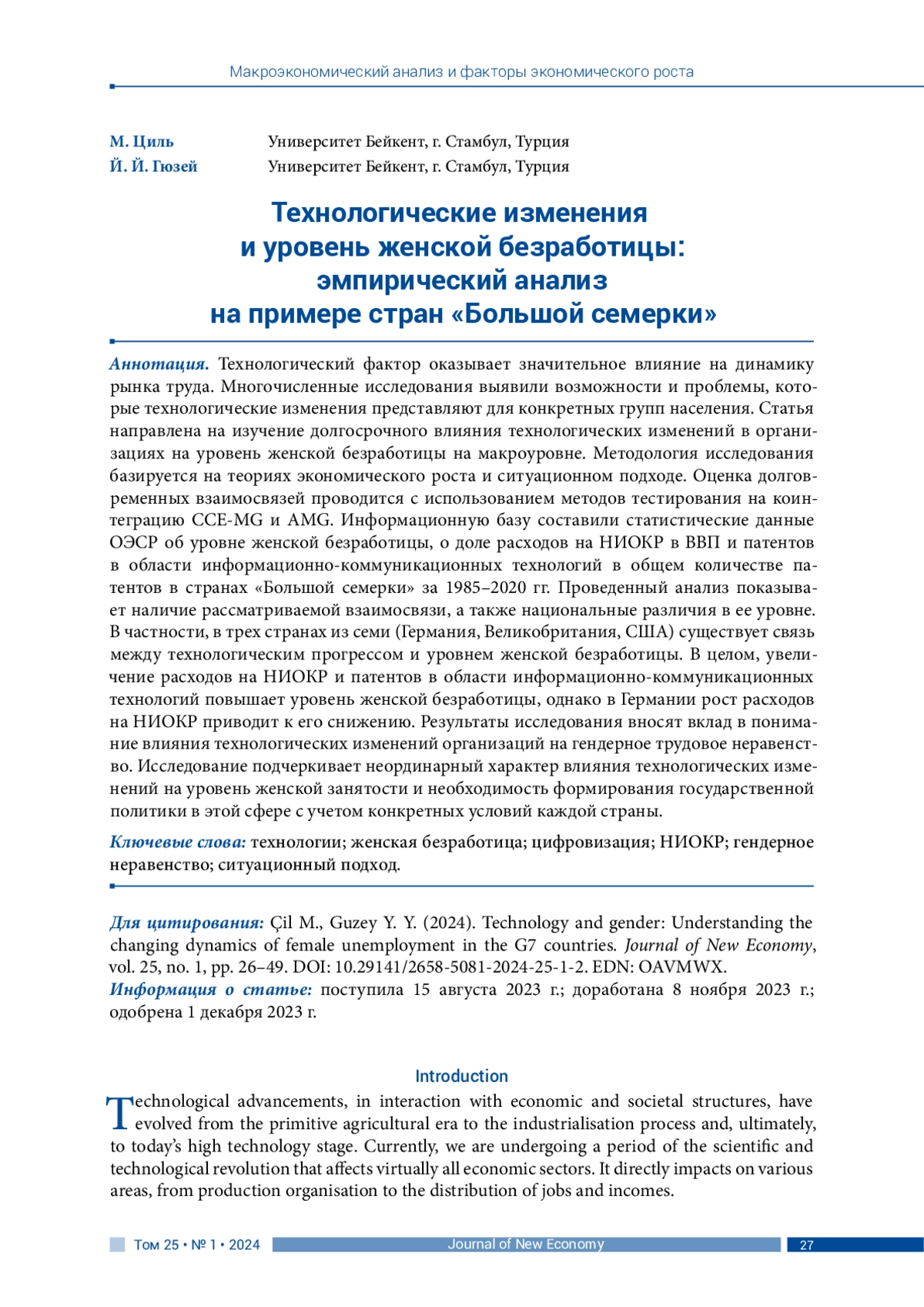 27. Gerçeker M., Özmen İ., Mucuk M. (2019). The empirical analysis of the causality between R&D expenditures and unemployment: The case of G7 countries. Marmara Üniversitesi İktisadi ve İdari Bilimler Dergisi = Marmara University Journal of Economic and Administrative Sciences, vol. 41, no. 2, pp. 413-431. (In Turkish). DOI: 10.14780/muiibd.665104