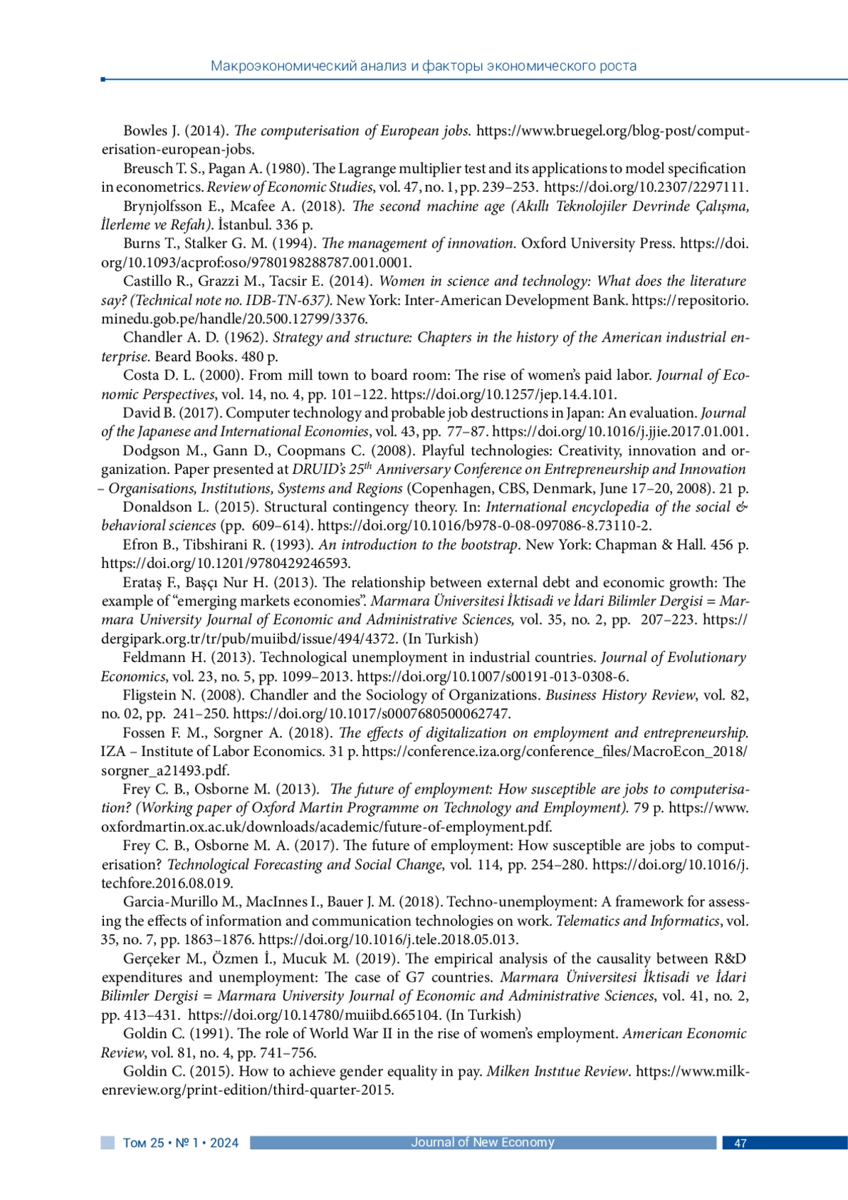 2. Acemoglu D., Restrepo P. (2020). Unpacking skill bias: Automation and new tasks. AEA Papers and Proceedings, no. 110, pp. 356-361. DOI: 10.1257/pandp.20201063 EDN: ZQRIQV