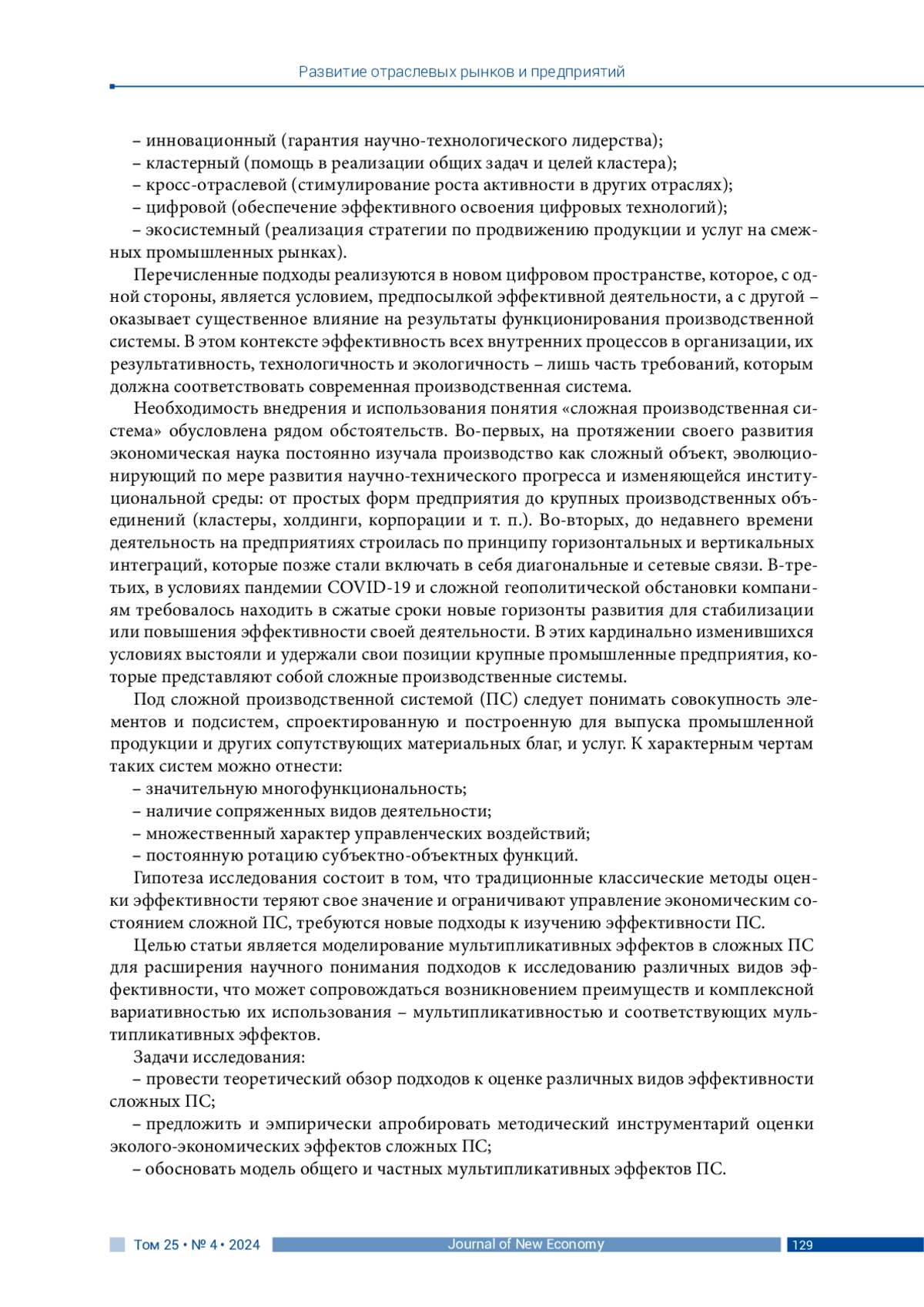 Статья: К ВОПРОСУ ИССЛЕДОВАНИЯ МУЛЬТИПЛИКАТИВНЫХ ЭФФЕКТОВ СЛОЖНЫХ ПРОИЗВОДСТВЕННЫХ СИСТЕМ (2024)