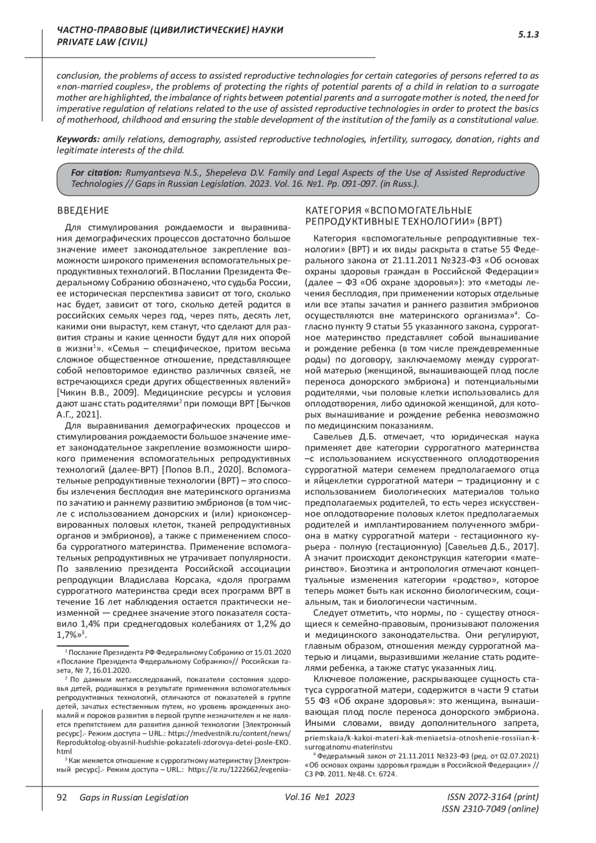 4. Егоров К.В., Егорова Е.С. Вспомогательные репродуктивные технологии: проблемы правоспособности пациентов // Гражданское право. 2022. - № 4. С. 17 - 20// СПС Консультант Плюс. EDN: WJKENU