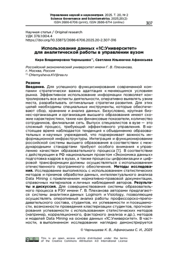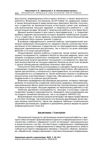 Заключение. Таким образом, проведение интеллектуального анализа данных делает возможным использование образовательных данных для повышения качества образовательного процесса, а использование отечественных программных решений обеспечивает дальнейшую цифровизацию вуза.