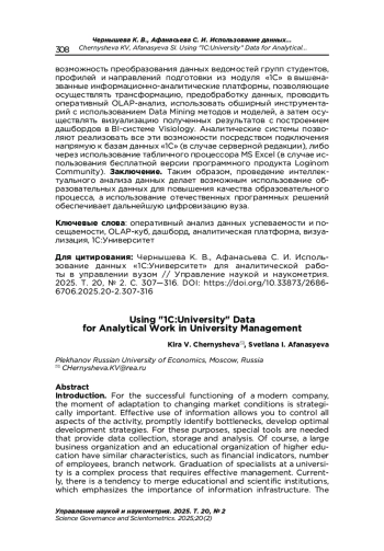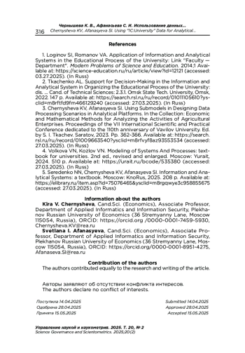 Введение. Для успешного функционирования современной компании стратегически важна адаптация к меняющимся условиям рынка. Эффективное использование информации позволяет контролировать все аспекты деятельности, оперативно выявлять узкие места, разрабатывать оптимальные стратегии развития. Для этих целей необходимы специальные инструменты, которые обеспечивают сбор, хранение и анализ данных. Безусловно, крупная бизнес-организация и организация высшего образования имеют схожие характеристики, такие как финансовые показатели, количество сотрудников, филиальная сеть. Выпуск специалистов в вузе - это сложный процесс, требующий эффективного управления. В настоящее время наблюдается тенденция к объединению образовательных и научных учреждений, что подчеркивает важность информационной инфраструктуры. Интеграция и функционирование российской системы высшего образования в соответствии с международными стандартами требуют особого внимания к управлению качеством образовательного процесса [1]. В соответствии с действующим в РФ национальным проектом «Экономика данных» подготовка кадров в вузах, а также процессы цифровизации и цифровой трансформации должны осуществляться с использованием отечественного программного обеспечения.