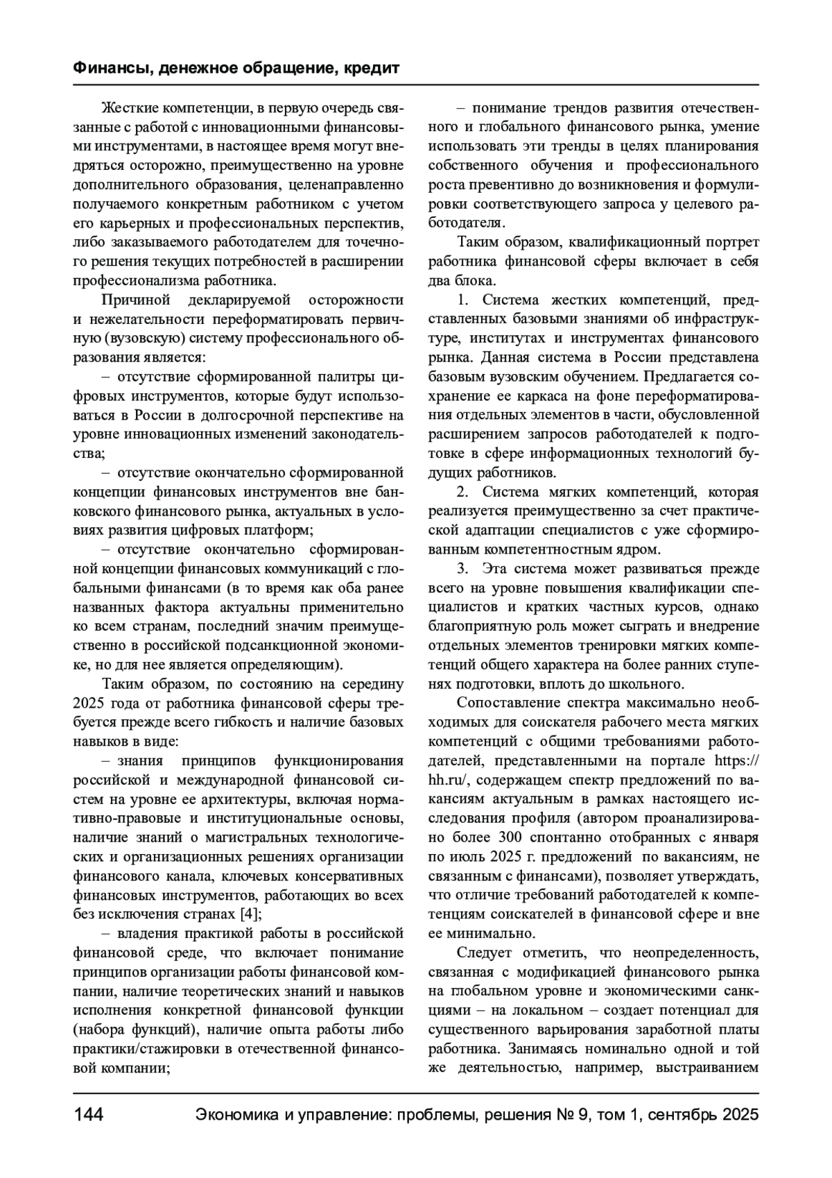 8. Евлахова Ю.С. Мягкие навыки специалистов в сфере финансов: ожидания студентов, требования работодателей и возможности вузов. URL:https://elib.utmn.ru/jspui/bitstream/ru-tsu/34697/1/ebs_2024_599_604.pdf (дата обращения 05.07.2025).