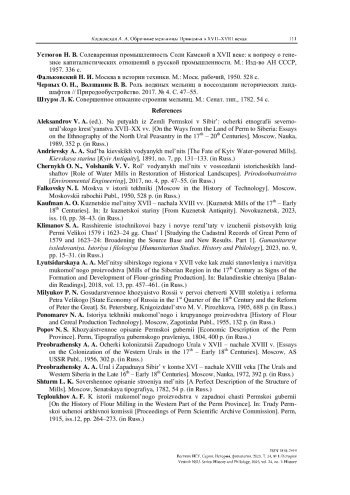 14. Теплоухов А. Ф. К истории мукомольного производства в западной части Пермской губернии // Тр. Пермской ученой архивной комиссии. Пермь, 1915. Вып. 12. С. 264-273.