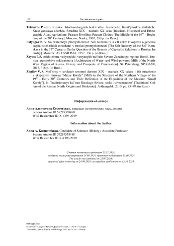 8. На путях из Земли Пермской в Сибирь: очерки этнографии северно-уральского крестьянства XVII-XX вв. / Отв. ред. В. А. Александров. М.: Наука, 1989. 352 с.