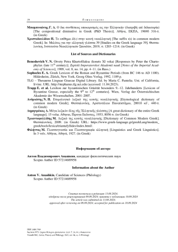 28. Τριανταφυλλίδης Μ. Λεξικό της κοινής νεοελληνικής. Θεσσαλονίκη, 2009. URL: https://www.greek-language.gr/greekLang/modern_greek/tools/lexica/triantafyllides/index.html (дата обращения 18.05.2023).