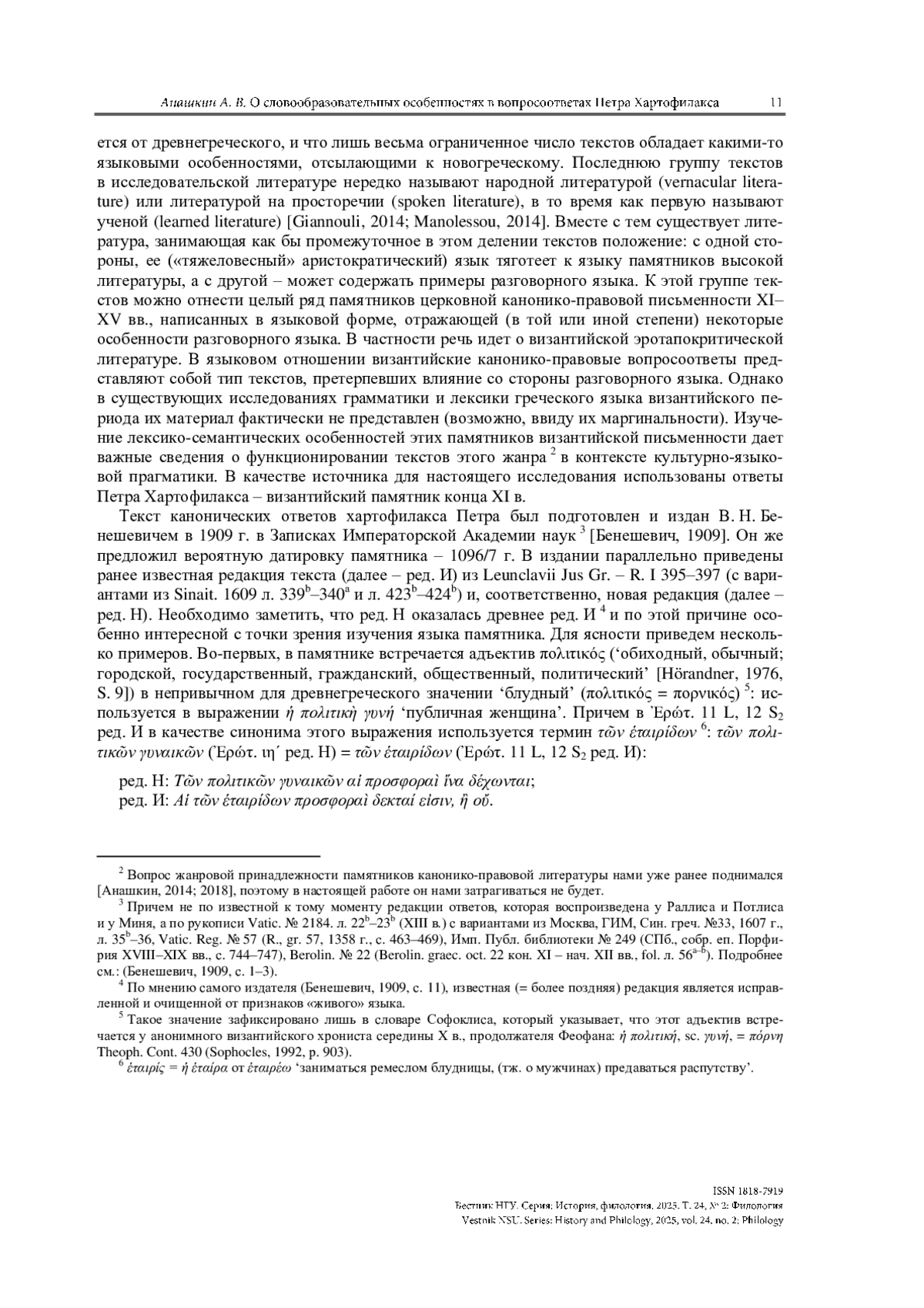 2. Анашкин А. В. Жанровая природа канонико-правовых ответов патриарха Николая III Кирдиниата Грамматика // Вестник Волгоград. гос. ун-та. Серия 4: История. Регионоведение. Международные отношения. 2018. № 23 (5). С. 25-33. https://doi.org/10.15688/jvolsu4.2018.5.2