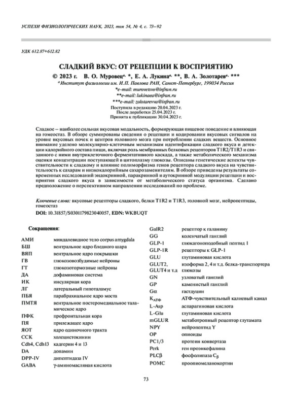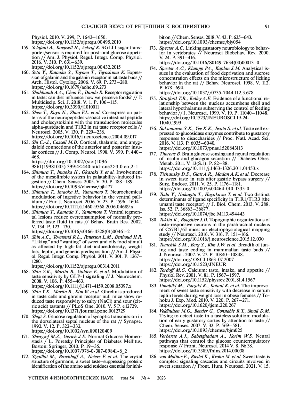 186. von Molitor E., Riedel K., Krohn M. et al. Sweet taste is complex: signaling cascades and circuits involved in sweet sensation // Front. Hum. Neurosci. 2021. V. 15. P. 667709. DOI: 10.3389/fnhum.2021.667709 EDN: QMXKCA