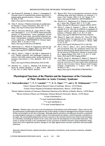 116. van der Meijden P., Heemskerk J. Platelet biology and functions: new concepts and clinical perspectives // Nat. Rev. Cardiol. 2019. V. 16. P. 166. DOI: 10.1038/s41569-018-0110-0 EDN: GEYUEU
