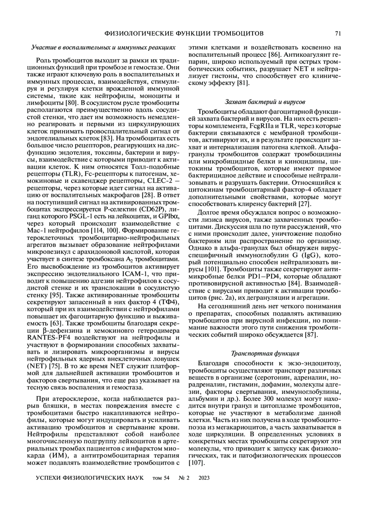 70. Kaiser R., Escaig R., Erber J., Nicolai L. Neutrophil-Platelet Interactions as Novel Treatment Targets in Cardiovascular Disease // Front. Cardiovasc. Med. 2022. V. 8. P. 2272. DOI: 10.3389/fcvm.2021.824112 EDN: RDUWWR
