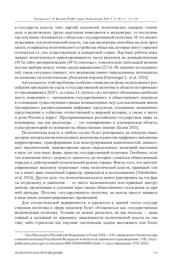 7. Федорченко С.Н. Политическое кодирование: постановка проблемы и компаративистика коммуникационных технологий управления массовым сознанием // Журнал политических исследований. 2017. Т. 1, № 3. С. 44-78. EDN: ZWHAPZ