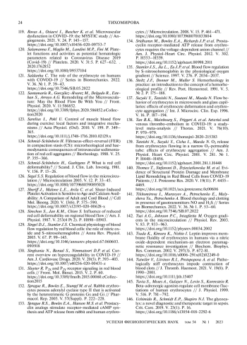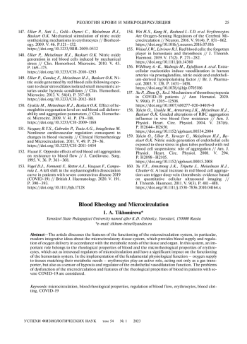 19. Barshtein G., Ben-Ami R., Yedgar S. Role of red blood cell flow behavior in hemodynamics and hemostasis // Expert Rev. Cardiovasc Ther. 2007. V. 5(4). P. 743-52. DOI: 10.1586/14779072.5.4.743