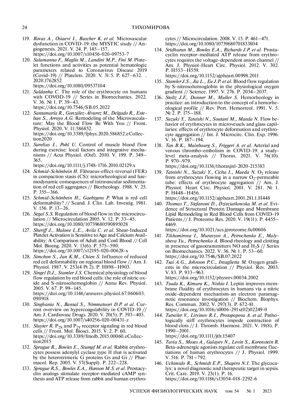 48. Ellsworth M.L., Ellis C.G., Goldman D. et al. Erythrocytes: oxygen sensors and modulators of vascular tone // Physiology. 2009. V. 24. P. 107–116. DOI: 10.1152/physiol.00038.2008