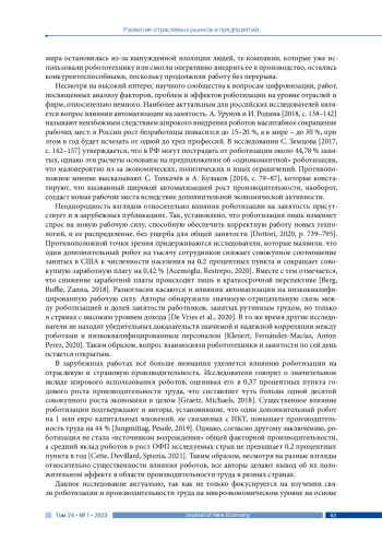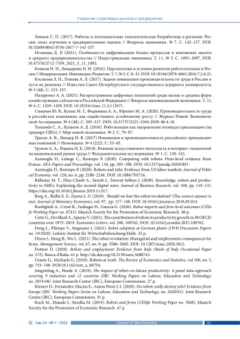 17. Acemoglu D., Restrepo P. (2020). Robots and jobs: Evidence from US labor markets. Journal of Political Economy, vol. 128, no. 6, pp. 2188-2244. DOI: 10.1086/705716 EDN: SUEWLL