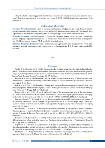 10. Потанин В. В., Головина А. Н. (2022). Структура социальной устойчивости промышленных экосистем // Социальные и экономические системы. № 6-2 (30.2). С. 195-204. EDN: ZDJGPS