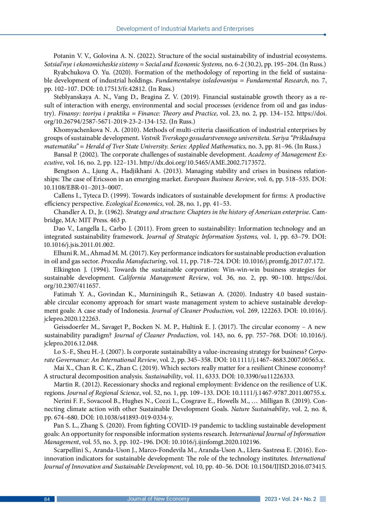 5. Романовская Е. В., Козлова Е. П. (2018). Содержание механизмаустойчивого развития промышленного предприятия // Вестник Нижегородского университета им. Н.И. Лобачевского. Серия “Социальные науки”. № 2 (50). С. 25-30. EDN: XWPOKD