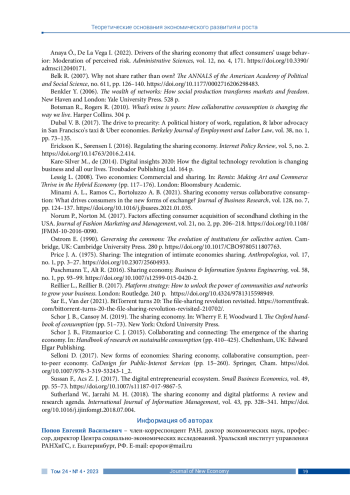10. Хусяинов, Т. М., Урусова Е. А. (2017). От общества потребления к экономике совместного пользования // Философия хозяйства. № 6. С. 132-146. EDN: YODPWT