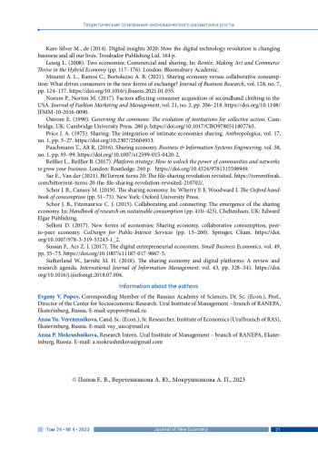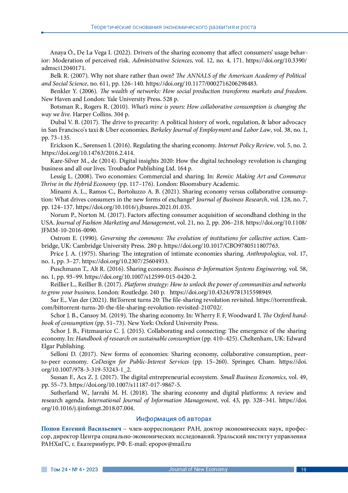 24. Puschmann T., Alt R. (2016). Sharing economy. Business & Information Systems Engineering, vol. 58, no. 1, pp. 93-99. DOI: 10.1007/s12599-015-0420-2 EDN: MKYZAO