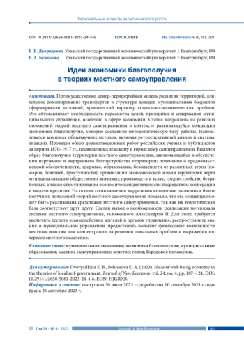 19. Belousova E. A. (2022). Economic well-being: Semantic environment and research contexts at a municipal level. Journal of New Economy, vol. 23, no. 4, pp. 46-68. DOI: 10.29141/2658-5081-2022-23-4-3 EDN: JTTVZH