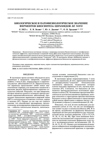 39. Kim G.T., Devi S., Sharma A. et al. Upregulation of the serine palmitoyltransferase subunit SPTLC2 by endoplasmic reticulum stress inhibits the hepatic insulin response // Exp. Mol. Med. 2022. DOI: 10.1038/s12276-022-00766-4 EDN: EHHXMW