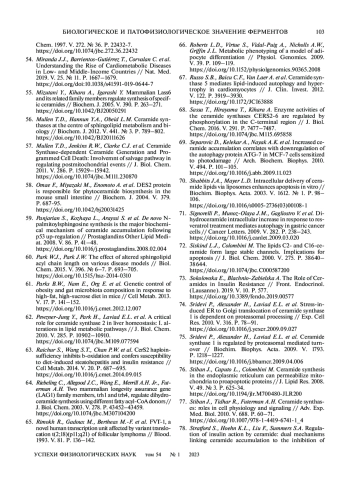 58. Omae F., Miyazaki M., Enomoto A. et al. DES2 protein is responsible for phytoceramide biosynthesis in the mouse small intestine // Biochem. J. 2004. V. 379. P. 687-95. DOI: 10.1042/bj20031425