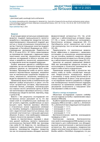 Статья: ПЕРСПЕКТИВЫ ПРИМЕНЕНИЯ ЗАКВАСОК МОЛОЧНОКИСЛЫХ БАКТЕРИЙ В ТЕХНОЛОГИИ ЗЕРНОВОГО ХЛЕБА ИЗ ПОЛБЫ (2025)
