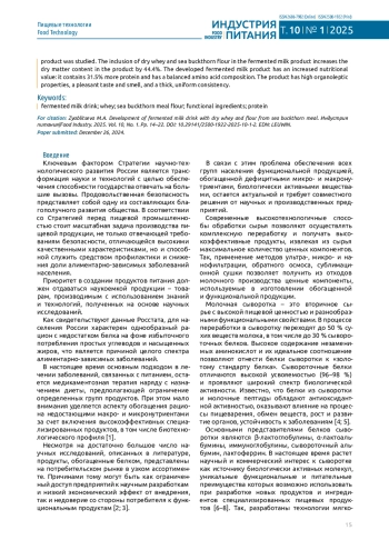 Ключевым фактором Стратегии научно-технологического развития России является трансформация науки и технологий с целью обеспечения способности государства отвечать на большие вызовы. Продовольственная безопасность представляет собой одну из составляющих благополучного развития общества. В соответствии со Стратегией перед пищевой промышленностью стоит масштабная задача производства пищевой продукции, не только отвечающей требованиям безопасности, отличающейся высокими качественными характеристиками, но и способной служить средством профилактики и снижения доли алиментарно-зависимых заболеваний населения