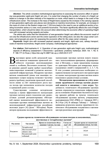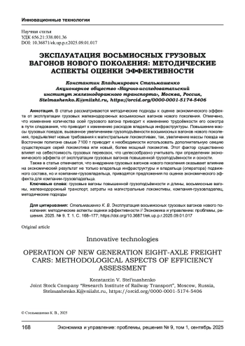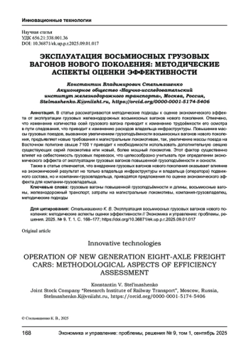 Статья: ЭКСПЛУАТАЦИЯ ВОСЬМИОСНЫХ ГРУЗОВЫХ ВАГОНОВ НОВОГО ПОКОЛЕНИЯ: МЕТОДИЧЕСКИЕ АСПЕКТЫ ОЦЕНКИ ЭФФЕКТИВНОСТИ (2025)