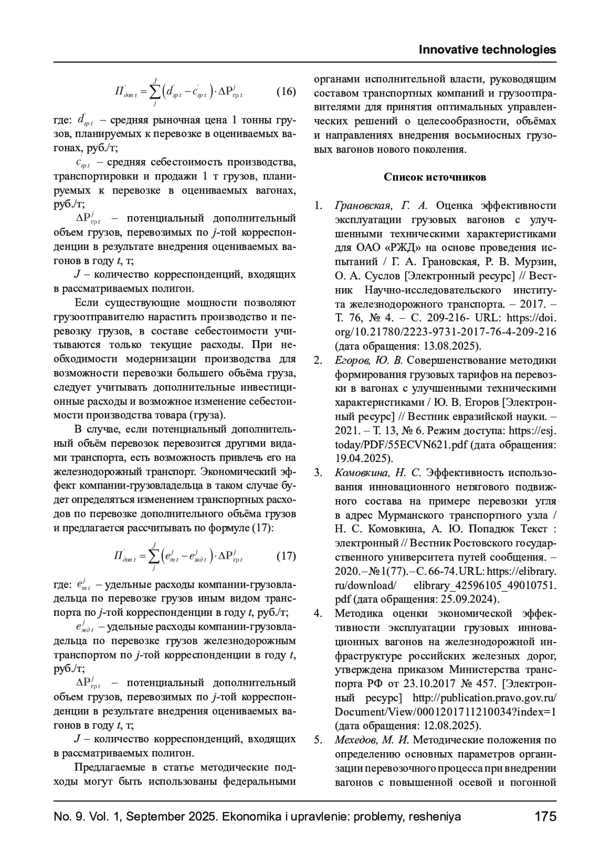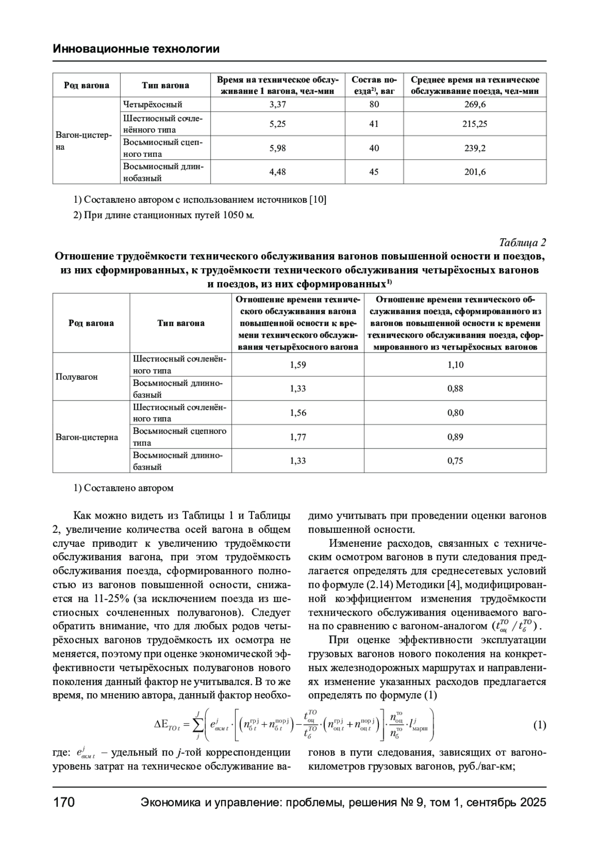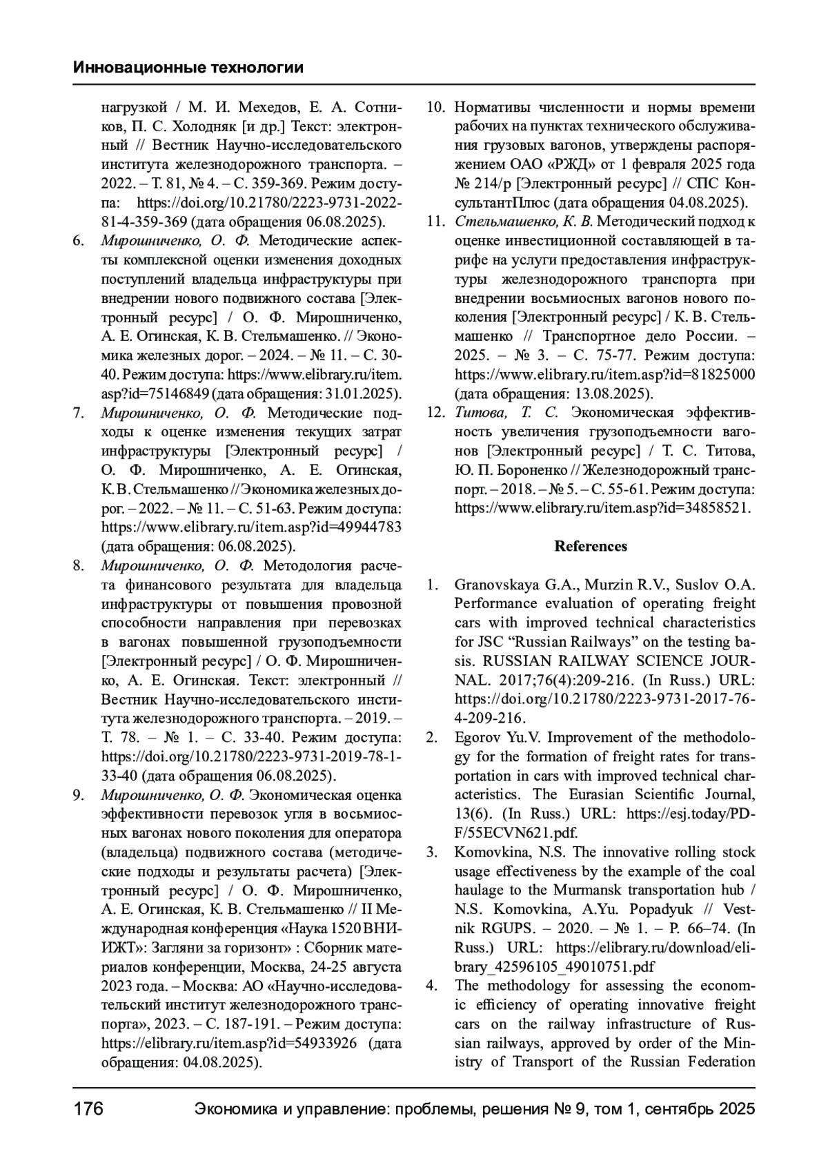 СТЕЛЬМАШЕНКО К. В. ЭКСПЛУАТАЦИЯ ВОСЬМИОСНЫХ ГРУЗОВЫХ ВАГОНОВ НОВОГО ПОКОЛЕНИЯ: МЕТОДИЧЕСКИЕ АСПЕКТЫ ОЦЕНКИ ЭФФЕКТИВНОСТИ // ЭКОНОМИКА И УПРАВЛЕНИЕ: ПРОБЛЕМЫ, РЕШЕНИЯ. 2025. ТОМ 1 № 9