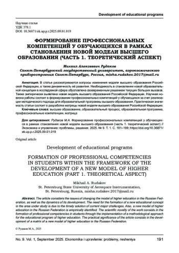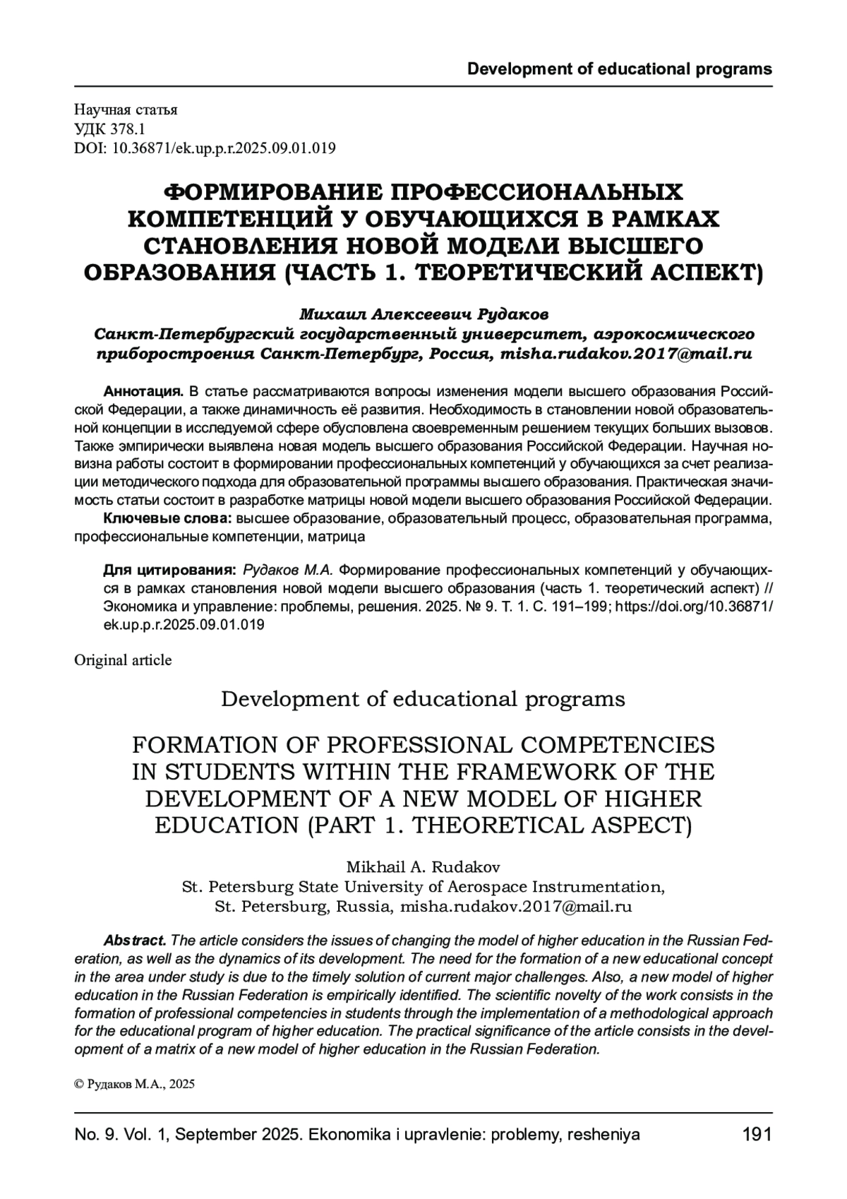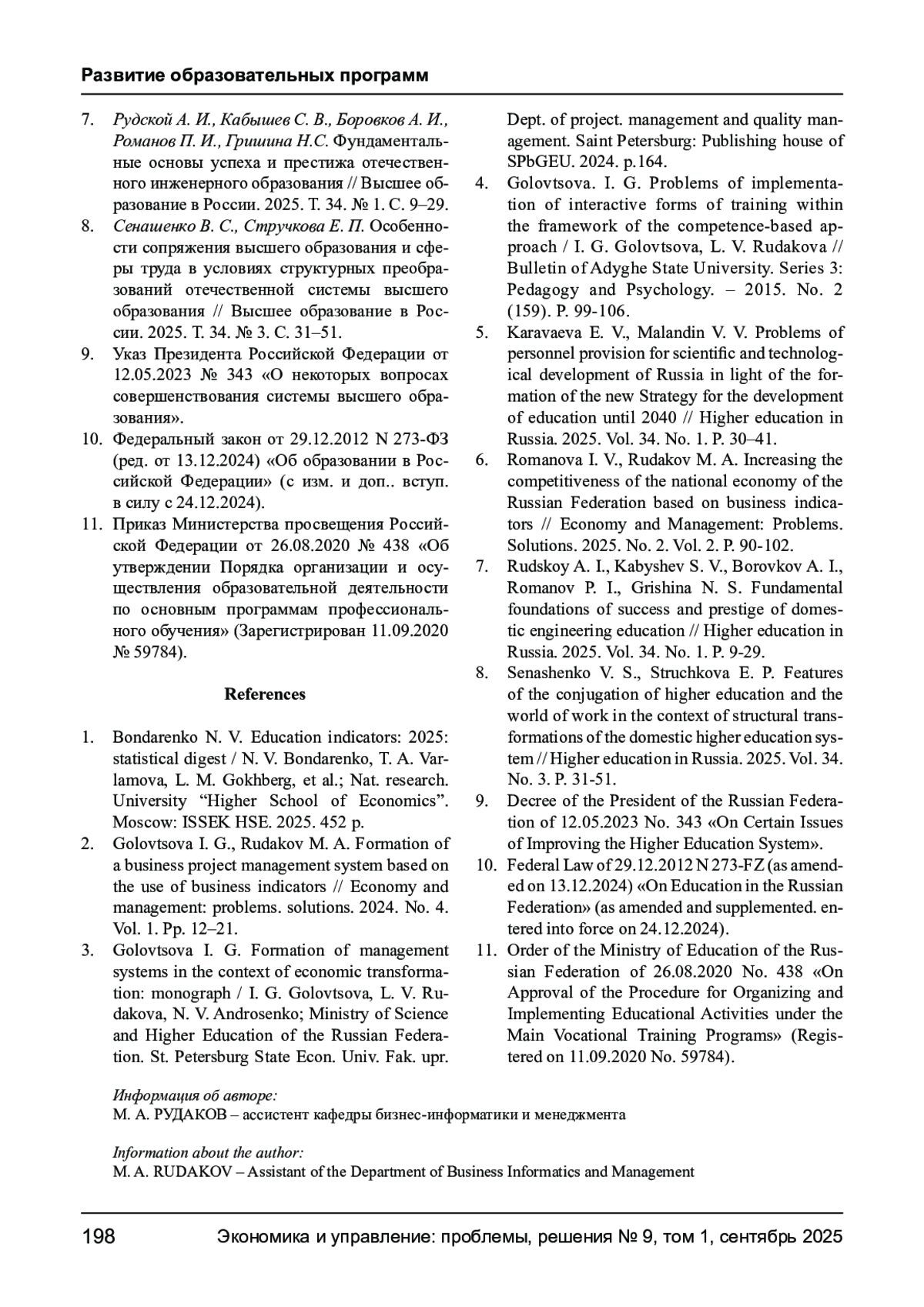 7. Рудской А. И., Кабышев С. В., Боровков А. И., Романов П. И., Гришина Н.С. Фундаментальные основы успеха и престижа отечественного инженерного образования // Высшее образование в России. 2025. Т. 34. № 1. С. 9-29. EDN: LPGCRP