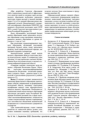 5. Караваева Е. В., Маландин В. В. Проблемы кадрового обеспечения научно-технологического развития России в свете формирования новой Стратегии развития образования до 2040 года // Высшее образование в России. 2025. Т. 34. №1. С. 30-41. EDN: MRNZIA