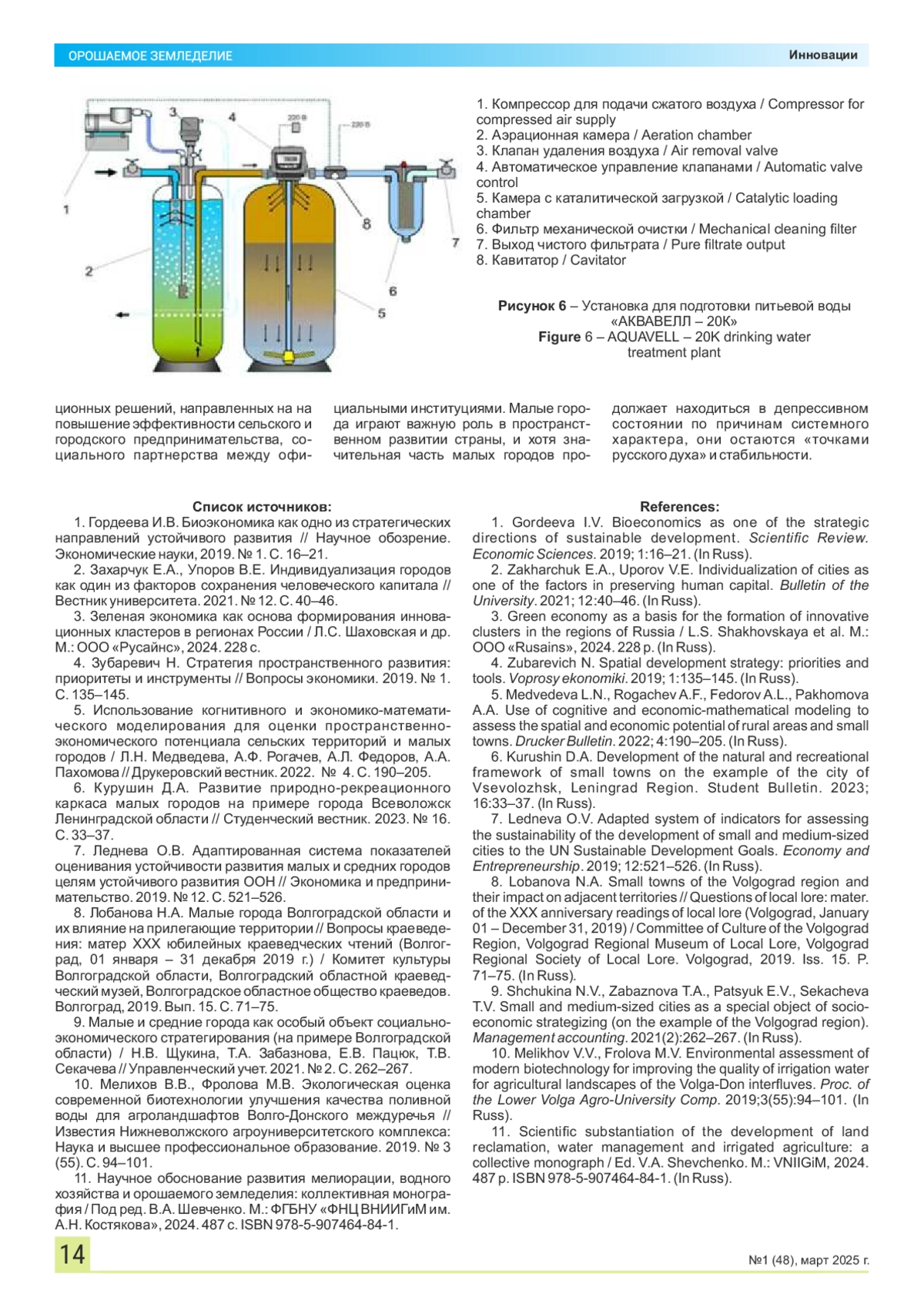 12. Новиков А.Е., Новиков А.А. Орошение и комплексное развитие сельских территорий // Орошаемое земледелие. 2024. № 2 (45). С. 5-6.