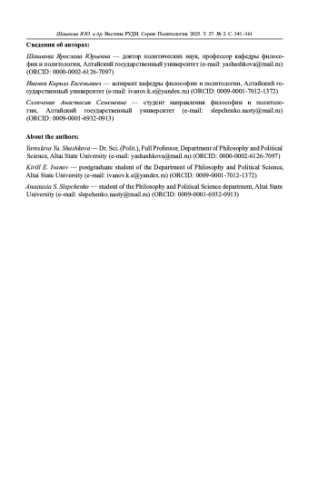 Цель исследования - выяснить, каким образом развлекательный контент влияет на политическую социализацию российской молодежи. В качестве эмпирической базы использованы данные массового опроса молодежи в четырех регионах России (Алтайский край, Томская область, Новосибирская область, Республика Алтай; объем выборки - 1257 респондентов), а также итоги нейросетевого анализа и контент-анализа пользовательских комментариев в Steam и YouTube. По результатам опроса в структуре политической социализации выявлены малочисленное «ядро» молодых пользователей (до 10 %), которое осознает политический подтекст развлекательного контента, и периферия (до 80 %), предпочитающая избегать политики, отрицающая ее влияние на свои ценности и установки и воспринимающая игры и видео исключительно как досуг. Нейросетевой анализ текста определил ключевые тематические кластеры (мегапеременные) в пользовательских дискуссиях: темы войны и мира, виртуального и реального, патриотизма и протеста, социальной справедливости и недоверия к властям. Установлены различия в характере дискурсов: на игровой платформе политика обсуждается более отвлеченно и по-философски, тогда как на видеохостинге дискурс значительно более политизирован (доминируют оценки текущей повестки, поляризация «ура-патриотов» vs. оппозиции). В заключение делается вывод о противоречивой роли развлекательного контента как особого канала политической социализации, он незаметно транслирует политические сюжеты, которые осознанно воспринимаются активным меньшинством молодежи и могут оказывать косвенное влияние на пассивное большинство. Полученные результаты отражают сегментацию молодежной аудитории и необходимость учета этой специфики при анализе влияния цифровой среды на формирование политической идентичности.