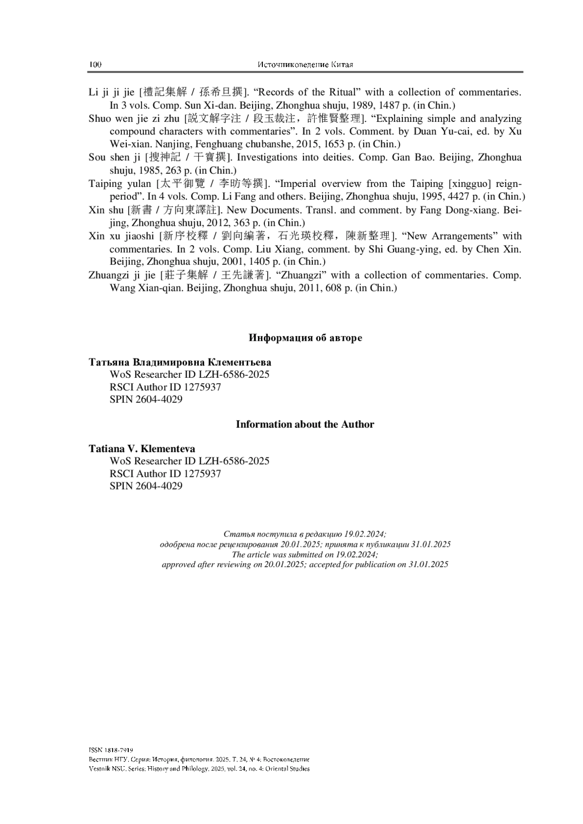 2. Гань Бао. Записки о поисках духов (Соу шэнь цзи) / Пер. с древнекит., предисл., примеч. и словарь-указ. Л. Н. Меньшикова. СПб.: Петербургское Востоковедение, 1994. 576 с.