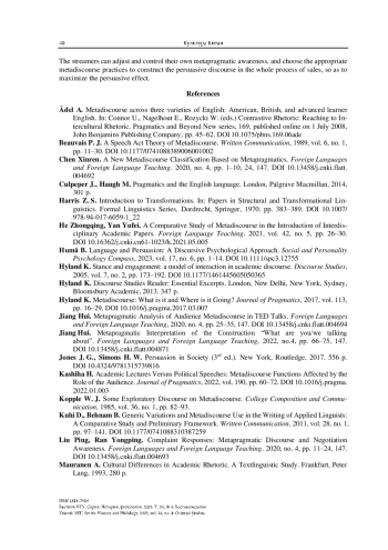 10. Hyland K. Metadiscourse: What is it and Where is it Going? Journal of Pragmatics, 2017, vol. 113, pp. 16-29. https://doi.org/10.1016/j.pragma.2017.03.007